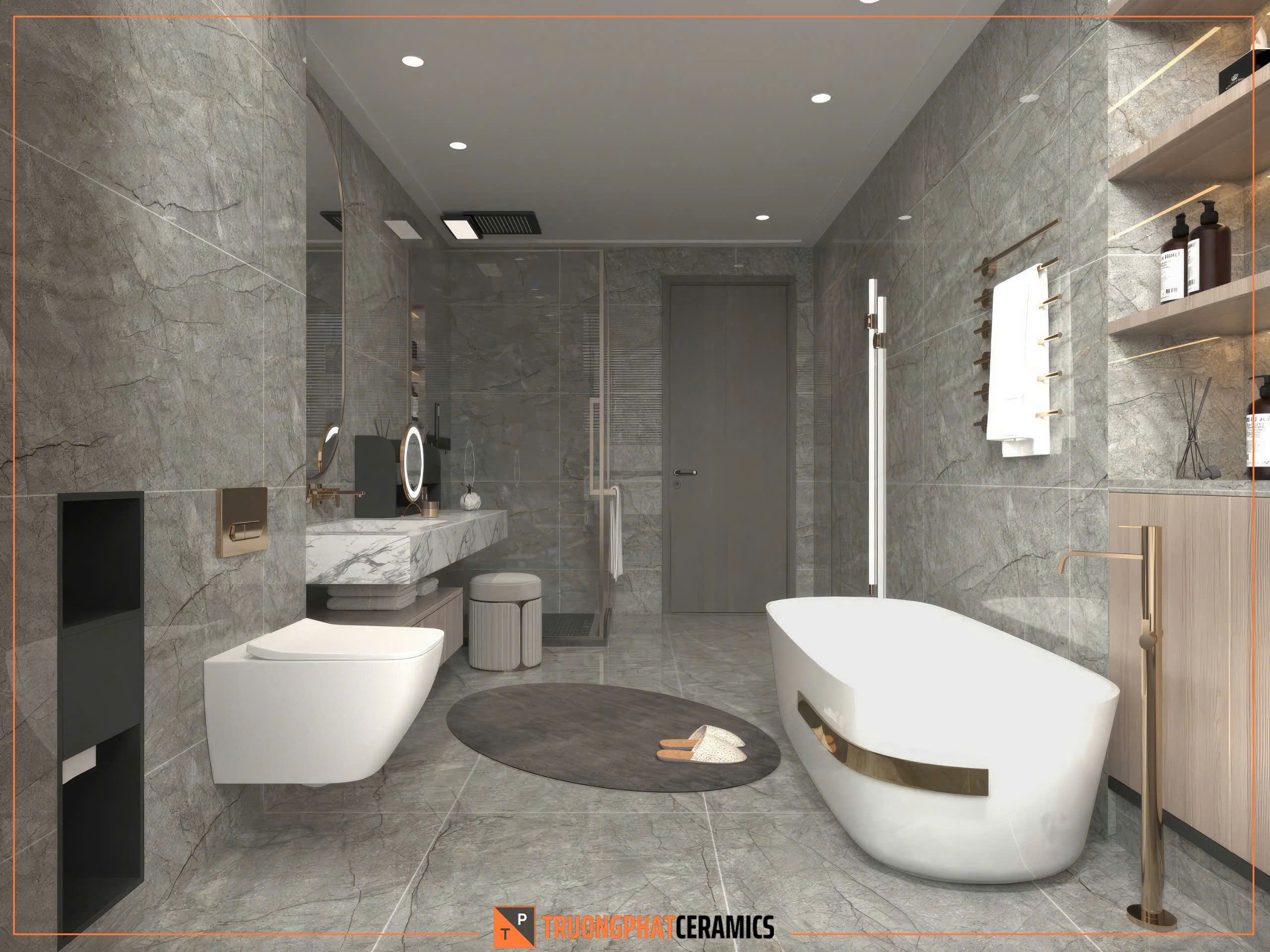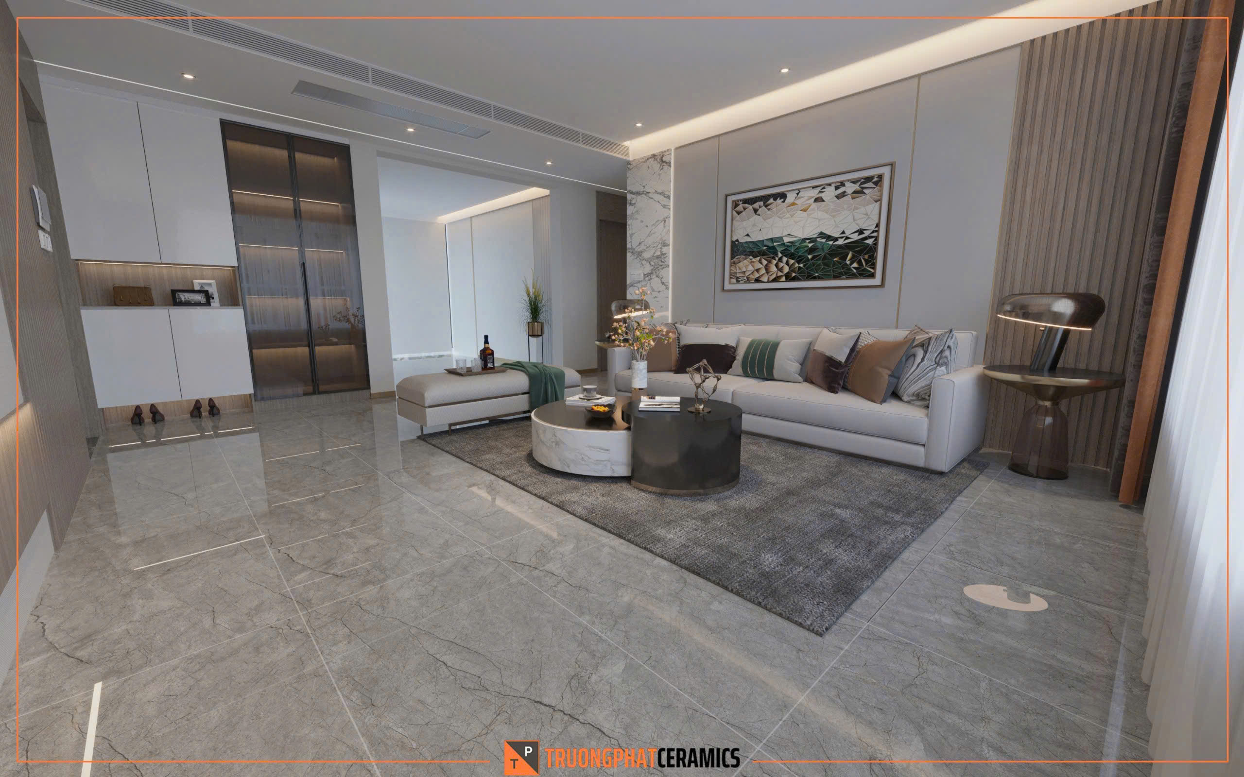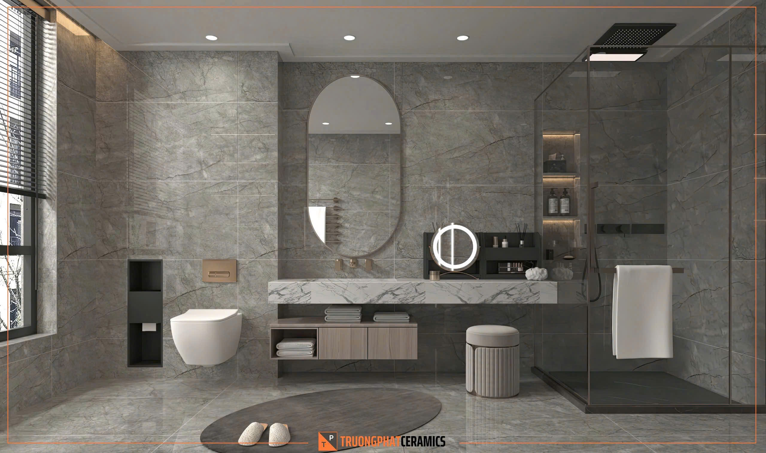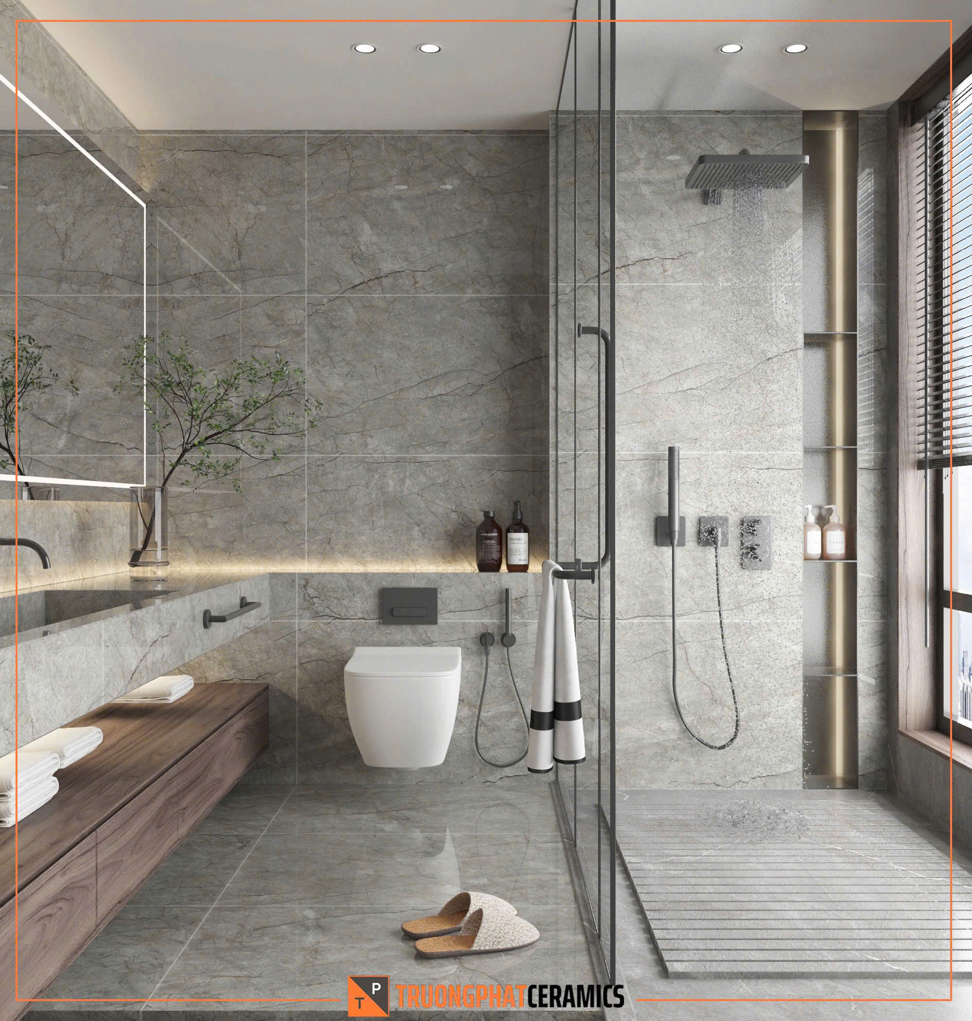 Kích thước: 60×120 cm, khổ lớn giúp tạo không gian rộng rãi và liền mạch hơn.